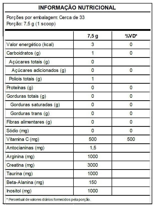 Recomendação de uso: 7,5 g ao dia (1 scoop ou 1 colher de sopa)
